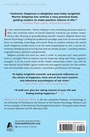 A national bestseller, Authentic Happiness launched the revolutionary new science of Positive Psychology--and sparked a coast-to-coast debate on the nature of real happiness. According to esteemed psychologist and bestselling author Martin Seligman, happiness is not the result of good genes or luck. Real, lasting happiness comes from focusing on one's personal strengths rather than weaknesses--and working with them to improve all aspects of one's life. Using practical exercises, brief tests, and a dynamic website program, Seligman shows readers how to identify their highest virtues and use them in ways they haven't yet considered. Accessible and proven,