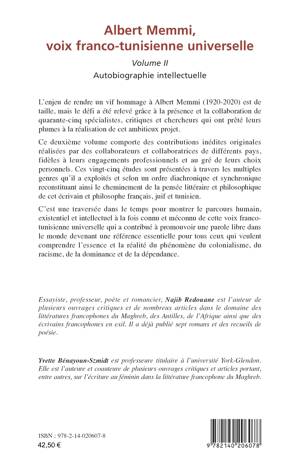 L’enjeu de rendre un vif hommage à Albert Memmi (1920-2020) est de taille, mais le défi a été relevé grâce à la présence et la collaboration de quarante-cinq spécialistes, critiques et chercheurs qui ont prêté leurs plumes à la réalisation de cet ambitieux projet. C’est une traversée dans le temps pour montrer le parcours humain, existentiel et intellectuel à la fois connu et méconnu de cette voix franco-tunisienne universelle qui a contribué à promouvoir une parole libre dans le monde devenant une référence essentielle pour tous ceux qui veulent comprendre l’essence et la réalité du phénomène du colonialisme, du racisme, de la dominance et de la dépendance.
