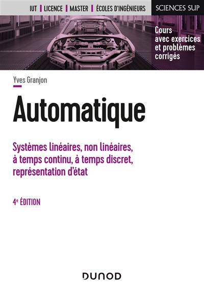 Cet ouvrage très didactique part des systèmes linéaires pour arriver aux aspects les plus complexes de l'automatique. Les notions fondamentales sont illustrées par de nombreux exemples et applications. Chaque chapitre se termine par une série d'exercices corrigés. Les applications font appel aux logiciels LabView, Mathematica et MatLab. Cette quatrième édition comporte des actualisations ponctuelles et de nombreux nouveaux exercices.