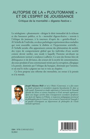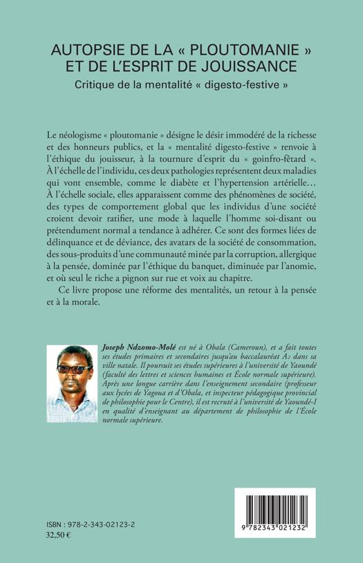 Le néologisme "ploutomanie" désigne le désir immodéré de la richesse et des honneurs publics, et la "mentalité digesto-festive" renvoie à l'éthique du jouisseur. A l'échelle sociale, ces deux pathologies apparaissent comme des phénomènes de société, une mode à laquelle l'homme a tendance à adhérer. Ce sont des avatars de la société de consommation, des sous-produits d'une communauté minée par la corruption, allergique à la pensée. Ce livre propose une réforme des mentalités, un retour à la pensée et à la morale.