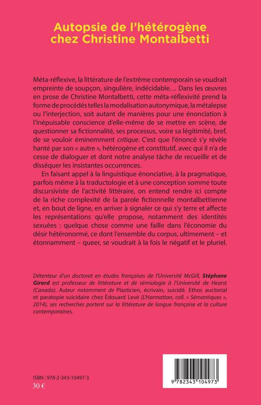Autopsie de l'hétérogène chez Christine Montalbetti