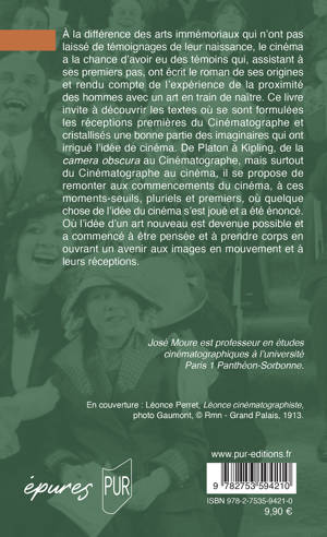 À la différence des arts immémoriaux qui n’ont pas laissé de témoignages de leur naissance, le cinéma a la chance d’avoir eu des témoins qui, assistant à ses premiers pas, ont écrit le roman de ses origines et rendu compte de l’expérience de la proximité des hommes avec un art en train de naître. Ce livre invite à découvrir les textes où se sont formulées les réceptions premières du Cinématographe et cristallisés une bonne partie des imaginaires qui ont irrigué l’idée de cinéma. De Platon à Kipling, de la camera obscura au Cinématographe, mais surtout du Cinématographe au cinéma, il se propose de remonter aux commencements du cinéma, à ces moments-seuils, pluriels et premiers, où quelque chose de l’idée du cinéma s’est joué et a été énoncé. Où l’idée d’un art nouveau est devenue possible et a commencé à être pensée et à prendre corps en ouvrant un avenir aux images en mouvement et à leurs réceptions.