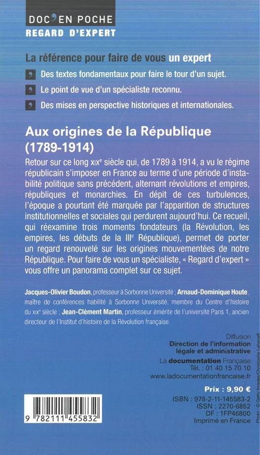 Une présentation des origines de la République française actuelle qui analyse trois grands moments fondateurs : la Révolution, les empires et les débuts de la troisième République.