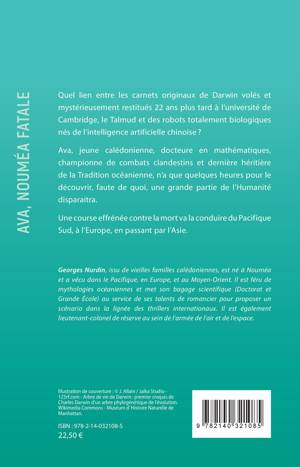 Quel lien entre les carnets originaux de Darwin volés et mystérieusement restitués 22 ans plus tard à l'université de Cambridge, le Talmud et des robots totalement biologiques nés de l'intelligence artificielle chinoise ? Ava, jeune calédonienne, docteure en mathématiques, championne de combats clandestins et dernière héritière de la Tradition océanienne, n'a que quelques heures pour le découvrir, faute de quoi, une grande partie de l'Humanité disparaitra. Une course effrénée contre la mort va la conduire du Pacifique Sud, à l'Europe, en passant par l'Asie.
