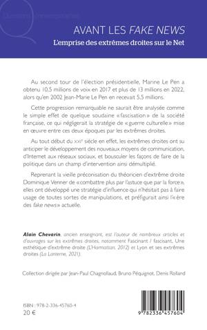 Au second tour de l'élection présidentielle, Marine Le Pen a obtenu 10,5 millions de voix en 2017 et plus de 13 millions en 2022, alors qu'en 2002 Jean-Marie Le Pen en recevait 5,5 millions. Cette progression remarquable ne saurait être analysée comme le simple effet de quelque soudaine fascisation de la société française, ce qui négligerait la stratégie de guerre culturelle mise en oeuvre entre ces deux époques par les extrêmes droites. Au tout début du XXIe siècle en effet, les extrêmes droites ont su anticiper le développement des nouveaux moyens de communication, d'Internet aux réseaux sociaux, et bousculer les façons de faire de la politique dans un champ d'intervention ainsi démultiplié. Reprenant la vieille préconisation du théoricien d'extrême droite Dominique Venner de combattre plus par l'astuce que par la force, elles ont développé une stratégie d'influence qui n'hésitait pas à faire usage de toutes sortes de manipulations, et préfigurait ainsi l' ère des fake news actuelle.