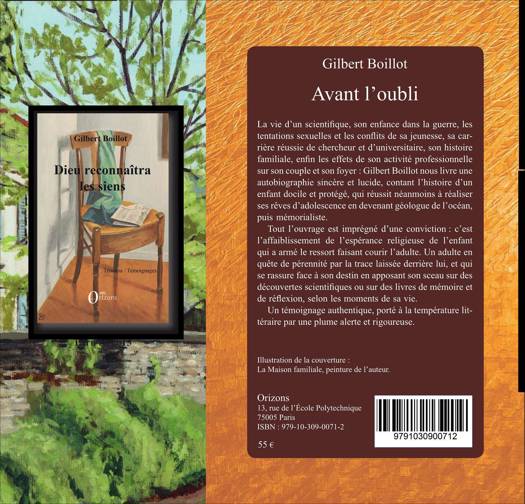 La vie d'un scientifique, son enfance dans la guerre, les tentations sexuelles et les conflits de sa jeunesse, sa carrière réussie de chercheur et d'universitaire, son histoire familiale, enfin les effets de son activité professionnelle sur son couple et son foyer : Gilbert Boillot nous livre une autobiographie sincère et lucide, contant l'histoire d'un enfant docile et protégé, qui réussit néanmoins à réaliser ses rêves d'adolescence en devenant géologue de l'océan, puis mémorialiste. Tout l'ouvrage est imprégné d'une conviction : c'est l'affaiblissement de l'espérance religieuse de l'enfant qui a armé le ressort faisant courir l'adulte. Un adulte en quête de pérennité par la trace laissée derrière lui, et qui se rassure face à son destin en apposant son sceau sur des découvertes scientifiques ou sur des livres de mémoire et de réflexion, selon les moments de sa vie. Un témoignage authentique, porté à la température littéraire par une plume alerte et rigoureuse.