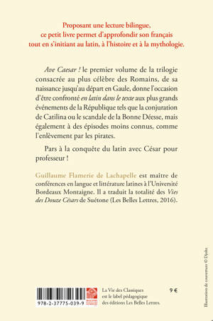 Ave Caesar ! le premier volume de la trilogie consacrée au plus célèbre des Romains, de sa naissance jusqu’au départ en Gaule, donne l’occasion d’être confronté en latin dans le texte aux plus grands événements de la République tels que la conjuration de Catilina ou le scandale de la Bonne Déesse, mais également à des épisodes moins connus, comme l’enlèvement par les pirates.