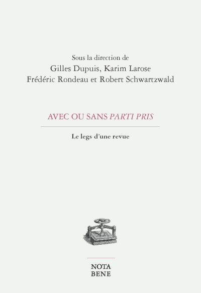 La revue Parti pris n'aura duré que cinq ans, de 1963 à 1968, mais la critique s'accorde pour dire qu'elle a joué un rôle de premier plan dans le passage de l'héritage intellectuel complexe du Canada français de l'après-guerre à l'affirmation idéologique d'une identité spécifiquement québécoise, en participant aux débats politiques et culturels les plus neufs de son époque...
