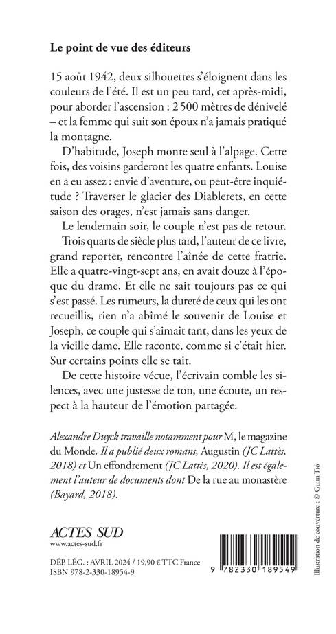 D'habitude, Joseph monte seul à l'alpage. Cette fois, des voisins garderont les quatre enfants. Louise en a eu assez : envie d'aventure, ou peut-être inquiétude ? Traverser le glacier des Diablerets, en cette saison des orages, n'est jamais sans danger.
