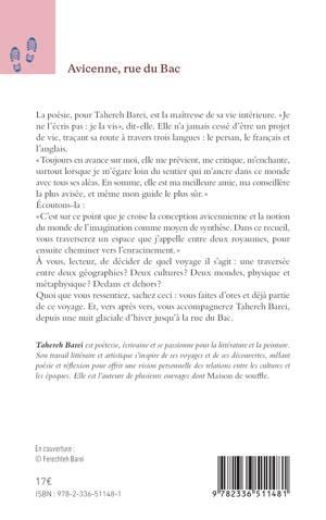La poésie, pour Tahereh Barei, est la maîtresse de sa vie intérieure. Je ne l'écris pas: je la vis, dit-elle. Elle n'a jamais cessé d'être un projet de vie, traçant sa route à travers trois langues: le persan, le français et l'anglais. Toujours en avance sur moi, elle me prévient, me critique, m'enchante, surtout lorsque je m'égare loin du sentier qui m'ancre dans ce monde avec tous ses aléas. En somme, elle est ma meilleure amie, ma conseillère la plus avisée, et même mon guide le plus sûr. Écoutons-la: C'est sur ce point que je croise la conception avicennienne et la notion du monde de l'imagination comme moyen de synthèse. Dans ce recueil, vous traverserez un espace que j'appelle entre deux royaumes, pour ensuite cheminer vers l'enracinement. À vous, lecteur, de décider de quel voyage il s'agit: une traversée entre deux géographies ? Deux cultures ? Deux mondes, physique et métaphysique ? Dedans et dehors ? Quoi que vous ressentiez, sachez ceci: vous faites d'ores et déjà partie de ce voyage. Et, vers après vers, vous accompagnerez Tahereh Barei, depuis une nuit glaciale d'hiver jusqu'à la rue du Bac.