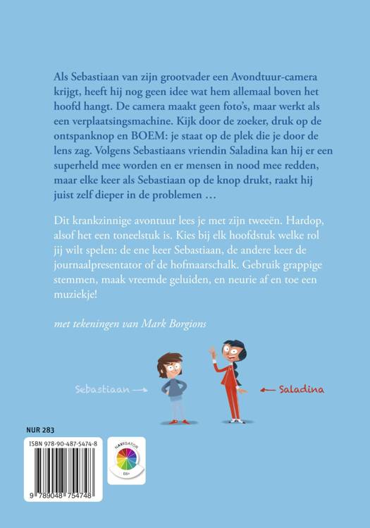 Als Sebastiaan van zijn grootvader een Avondtuur-camera krijgt, heeft hij nog geen idee wat hem allemaal boven het hoofd hangt. De camera maakt geen foto’s, maar werkt als een verplaatsingsmachine. Kijk door de zoeker, druk op de ontspanknop en BOEM: je staat op de plek die je door de lens zag. Volgens Sebastiaans vriendin Saladina kan hij er een superheld mee worden en er mensen in nood mee redden, maar elke keer dat Sebastiaan op de knop drukt, raakt hij juist zelf dieper in de problemen ...