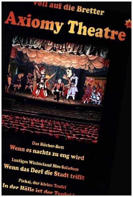 Axiomy Theatre ist eine Heftserie mit ausgewählten Theaterstücken, die insbesondere im Laientheaterschnell einstudiert werden können und keine aufwendigen Kulissen benötigen.Angelehnt an die Bücher der Autorin gibt es drei kurze Theaterstücke:Das Bücher-BettFlorian liebt Bücher. Er baut sich ein Bett aus Büchern und versucht darin zu schlafen. Aber das ist den ganzen Märchengestalten viel zu eng.Lustiges Wichteland Sim-SaladumDrei Wichte vom Lande verschlägt es in die große Wichtestadt. Im Trubel der geschäftigen Stadtwichte fühlen sich die Dörfler schnell verloren ...Pieksi, der kleine TeufelPieksi hat es als jüngster und kleinster Teufel nicht leicht. Er wird beim Kohlenaschen erwischt oder schürt das Feuer zu stark. Doch oft kommt es auf dieKleinsten an!