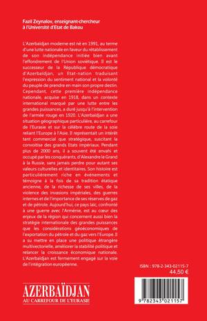 L'Azerbaïdjan moderne est né en 1991. Ce pays a une situation géographique particulière, au carrefour de l'Eurasie et sur la célèbre route de la soie reliant l'Europe à l'Asie. Son histoire est riche en événements et témoigne de sa tradition étatique ancienne, de la richesse de ses villes, de la violence des invasions impériales... Aujourd'hui, ce pays laïc, confronté à une guerre avec l'Arménie, est au cœur des enjeux de la région. L'Azerbaïdjan est fermement engagé sur la voie de l'intégration européenne.