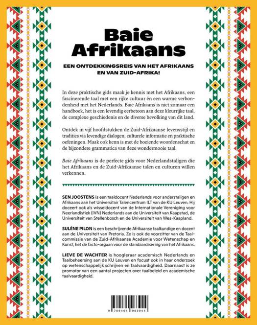 Baie Afrikaans is de perfecte gids voor Nederlandstaligen die het Afrikaans en de Zuid-Afrikaanse talen en culturen willen verkennen.