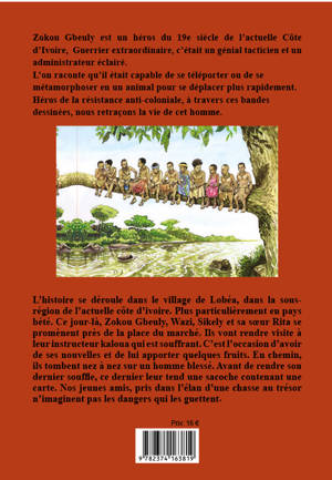 Zokou Gbeuly est un héros du 19e siècle de l’actuelle Côte d’Ivoire. Guerrier extraordinaire, c’était un génial tacticien et un administrateur éclairé. L’histoire se déroule dans le village de Lobéa. Ce jour-là Zokou, Wazi, Sikely et Rita se promènent sur la place du marché. Ils vont rendre visite à leur instructeur kaloua qui est souffrant. En chemin ils rencontrent un homme blessé. Avant de rendre son dernier souffle, ce dernier leur tend une sacoche contenant une carte. Nos jeunes amis pris dans l’élan d’une chasse au trésor n’imaginent pas les dangers qui les guettent.