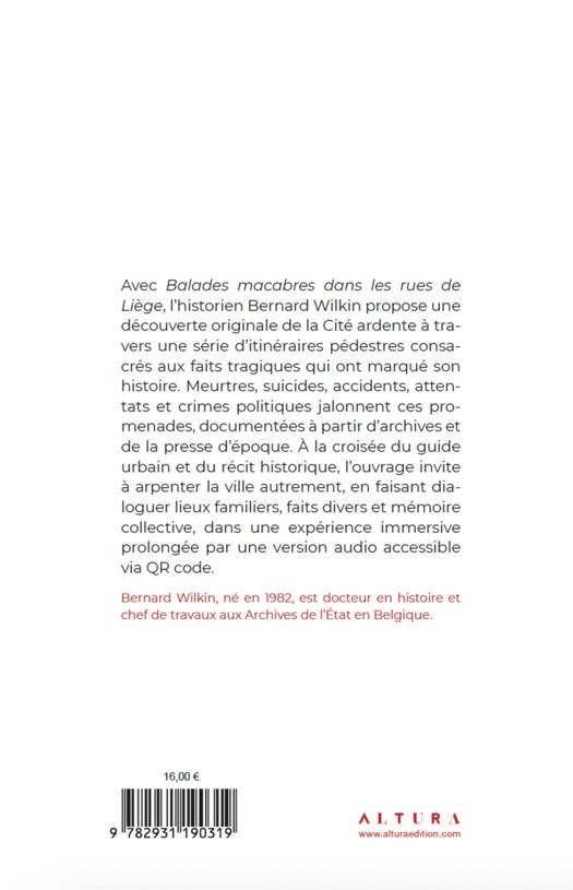 Des itinéraires pour se promener dans Liège et découvrir les faits tragiques qui ont marqué son histoire, entre lieux familiers, faits divers et mémoire collective. Meurtres, suicides, accidents, attentats et crimes politiques sont évoqués à partir de documents d'époque. Une version audio est accessible grâce à un QR code.