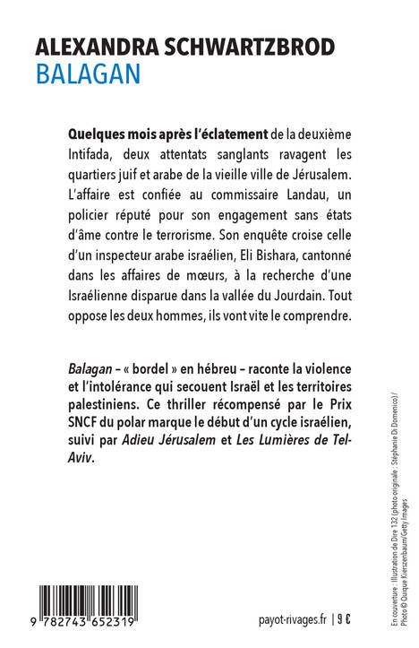 Balagan - « bordel » en hébreu - raconte la violence et l'intolérance qui secouent Israël et les territoires palestiniens. Ce thriller récompensé par le Prix SNCF du polar marque le début d'un cycle israélien, suivi par Adieu Jérusalem et Les Lumières de Tel-Aviv.