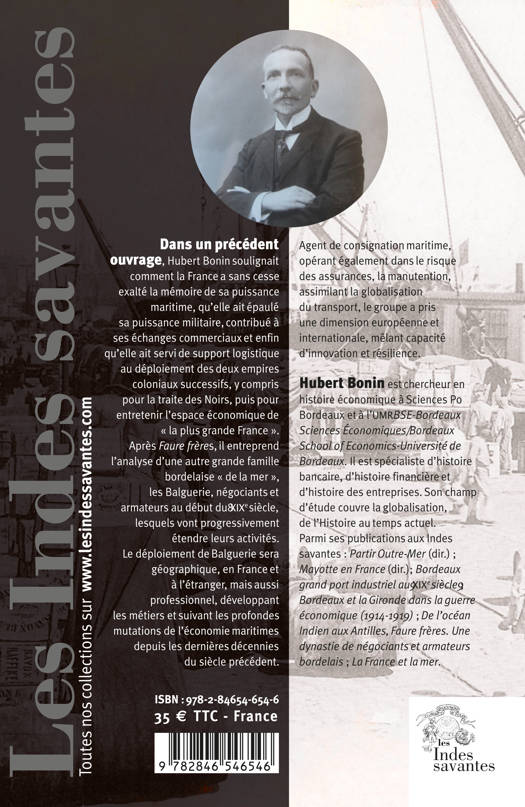 Dans un précédent ouvrage, Hubert Bonin soulignait comment la France a sans cesse exalté la mémoire de sa puissance maritime, qu’elle ait épaulé sa puissance militaire, contribué à ses échanges commerciaux et enfin qu’elle ait servi de support logistique au déploiement des deux empires coloniaux successifs, y compris pour la traite des Noirs, puis pour entretenir l’espace économique de « la plus grande France ». Après Faure frères, il entreprend l’analyse d’une autre grande famille bordelaise « de la mer », les Balguerie, négociants et armateurs au début du xixe siècle, lesquels vont progressivement étendre leurs activités. Le déploiement de Balguerie sera géographique, en France et à l’étranger, mais aussi professionnel, développant les métiers et suivant les profondes mutations de l’économie maritime depuis les dernières décennies du siècle précédent. Agent de consignation maritime, opérant également dans le risque des assurances, la manutention, assimilant la globalisation du transport, le groupe a pris une dimension européenne et internationale, mêlant capacité d’innovation et résilience.