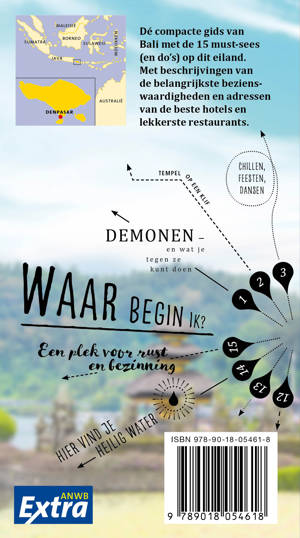 De ANWB Extra reisgids Bali biedt naast diverse wandelroutes en veel praktische tips over hotels en de cultuur ook 15 inspirerende bezienswaardigheden die je niet mag missen. Leer alles over de inwoners in het Bali museum, bezoek de Pura Taman Ayun tempel of beklim de Baturvulkaan.