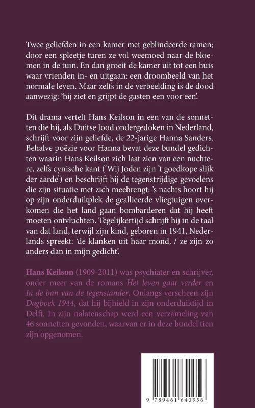 Dit drama vertelt Hans Keilson in een van de sonnetten die hij, als Duitse Jood ondergedoken in Nederland, schrijft voor zijn geliefde, de 22-jarige Hanna Sanders. Behalve poëzie voor Hanna bevat deze bundel gedichten waarin Hans Keilson zich laat zien van een nuchtere, zelfs cynische kant ('Wij Joden zijn 't goedkope slijk der aarde') en beschrijft hij de tegenstrijdige gevoelens die zijn situatie met zich meebrengt: 's nachts hoort hij op zijn onderduikplek de geallieerde vliegtuigen overkomen die het land gaan bombarderen dat hij heeft moeten ontvluchten. Tegelijkertijd schrijft hij in de taal van dat land, terwijl zijn kind, geboren in 1941, Nederlands spreekt: 'de klanken uit haar mond, / ze zijn zo anders dan in mijn gedicht'.