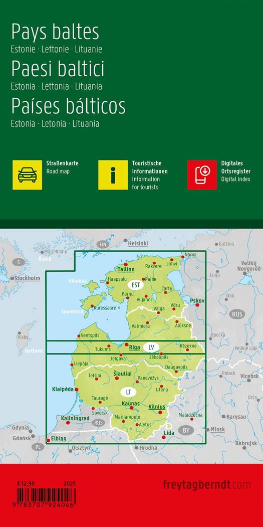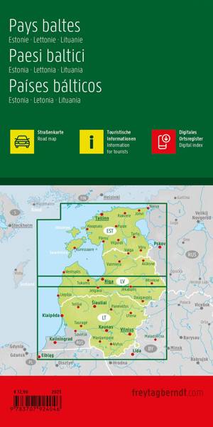 Deze recto/verso gedetailleerde wegenkaart van de Baltische Staten is zeer geschikt voor het plannen en rondtrekken door het land.