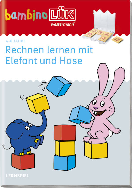 Das bambinoLÜK-Übungsheft "Rechnen lernen mit Elefant und Hase" richtet sich an kleine Rechenmeister, die die Ziffern im Zahlenraum bis 10 bereits kennen. Gemeinsam mit den WDR-Helden Elefant und Hase können sie Bauklötze, Murmeln, Finger zusammenzählen, Luftballons fliegen lassen, Bonbons essen und vieles mehr. Die einfachen Rechnungen werden durch kindgerechte Illustrationen bildlich dargestellt, um ein erstes mathematisches Verständnis zu schaffen.