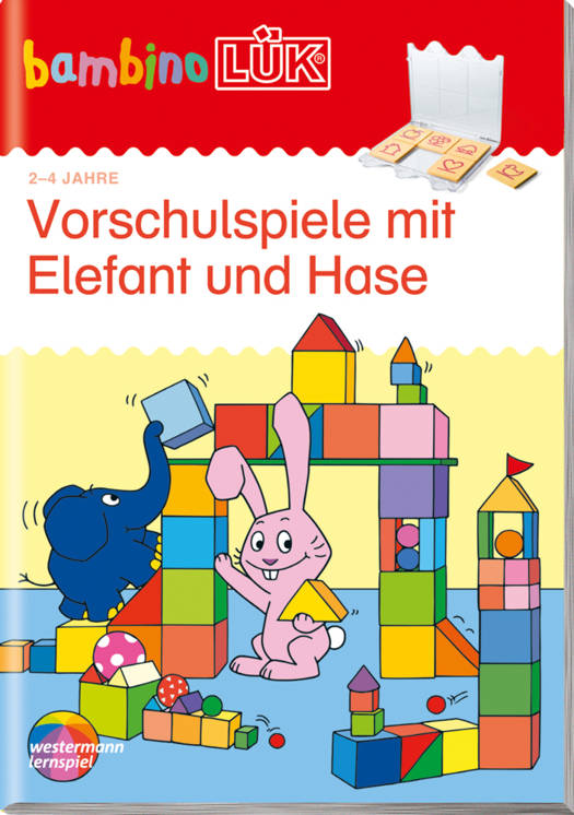 Bauklötze zählen, Farbmuster zuordnen, groß und klein unterscheiden: Mit dem bambinoLÜK-Heft "Vorschulspiele mit Elefant und Hase" sind Kinder perfekt vorbereitet für die Schule.