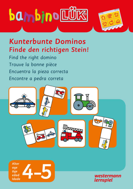 Da die Übungen keine Textelemente beinhalten, ist das Heft "Kunterbunte Dominos" unabhängig von der Muttersprache des Kindes einsetzbar. Die Spielanleitung ist in Deutsch, Englisch, Französisch, Spanisch und Portugiesisch enthalten.