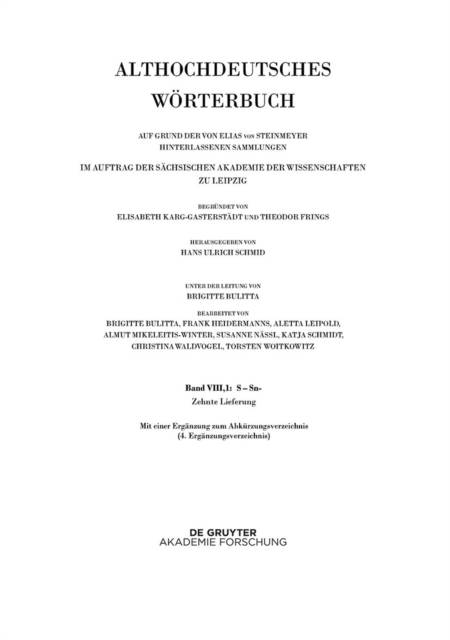 Das in zehn Bänden geplante Althochdeutsche Wörterbuch erscheint seit 1952 in Lieferungen bei der Sächsischen Akademie der Wissenschaften zu Leipzig und wird seit der Lieferung V/15 von Hans Ulrich Schmid herausgegeben. Band VIII (mit s- anlautende Stichwörter) enthält die materialreichste Wortstrecke und wird deshalb in zwei Teilen erscheinen.