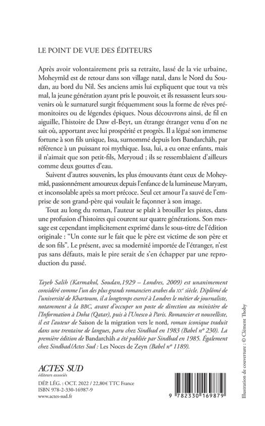 NOUVELLE ÉDITION Après avoir volontairement pris sa retraite, lassé de la vie urbaine, Mohaymid est de retour dans son village natal, dans le nord du Soudan, au bord du Nil. Ses anciens amis lui expliquent que tout va très mal, la jeune génération ayant pris le pouvoir, et ils ressassent leurs souvenirs.Tout au long du roman, l'auteur se plaît à brouiller les pistes, dans une profusion d'histoires qui courent sur quatre générations. Un message sous-tend l'ensemble : le présent, avec sa modernité importée de l'étranger, n'est pas sans défauts, mais le pire serait de s'en échapper par une reproduction du passé.