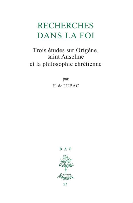 Une exclamation d'Origène (empruntée à Jérémie) : Tu m'as trompé, Seigneur ! Une autre de saint Anselme : Seigneur, je cherche ton visage ! L'une et l'autre nous a paru valoir d'être scrutée, comme introduisant à une demarche de pensée qui caractérise chacun de ces deux grands esprits, et plus encore au mouvement foncier de leur âme. Deux exemples, propres à faire voir, à travers les différences de deux époques aussi bien que de deux individualités, une parenté plus essentielle. Et nous encore, « nous sommes de leur race ». Tous ceux que nourrit de sa substance indéfiniment féconde une même grande tradition, sont frères. Pour compléter ce sentiment de l'unité dans un incessant pluralisme, nous avons cru pouvoir proposer un troisième exemple, pris à notre siècle même, celui du débat qui fut institué, au cours des années trente, sur les rapports de la foi chrétienne, et de la philosophie. Le lecteur verra de lui-même, sans qu'il soit besoin d'instituer parallèles ou contrastes, combien les questions qui agitaient ce débat sont encore aujourd'hui les nôtres.