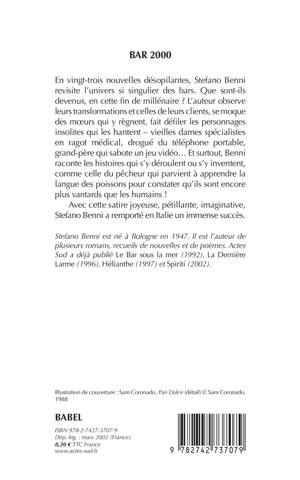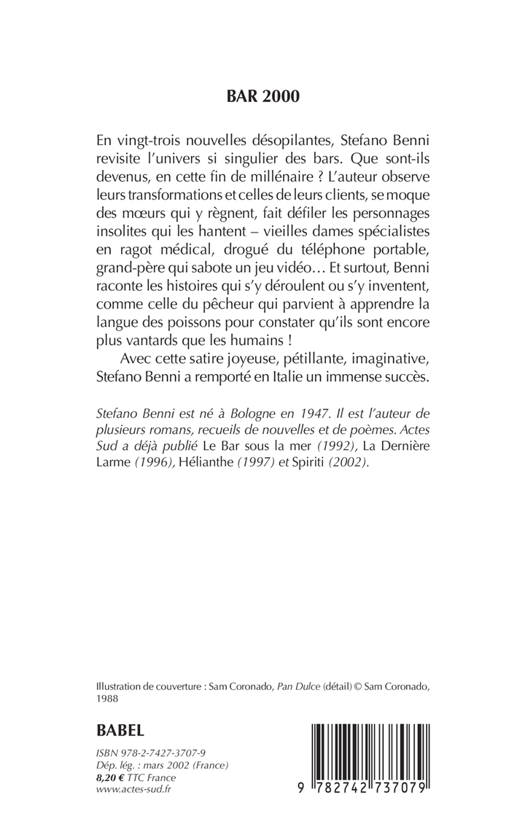 En vingt-trois nouvelles désopilantes, Stefano Benni revisite l'univers si singulier des bars. Que sont-ils devenus, en cette fin de millénaire ? L'auteur observe leurs transformations et celles de leurs clients, se moque des moeurs qui y règnent, fait défiler les personnages insolites qui les hantent — vieilles dames spécialistes en ragot médical, drogué du téléphone portable, grand-père qui sabote un jeu vidéo... Et surtout, Benni raconte les histoires qui s'y déroulent ou s'y inventent, comme celle du pêcheur qui parvient à apprendre la langue des poissons pour constater qu'ils sont encore plus vantards que les humains !