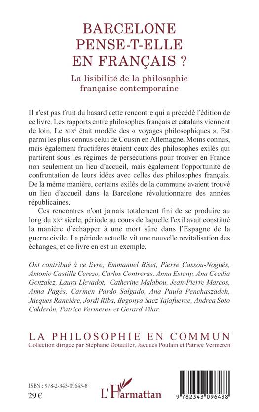 Les rapports entre philosophes français et catalans sont anciens, et le dix-neuvième siècle a vu se développer les "voyages philosophiques". Parmi les plus connus, celui de Victor Cousin en Allemagne. Moins connus, ceux des philosophes exilés qui partirent sous les régimes de persécutions pour trouver en France une terre d'accueil et de philosophie. De la même manière, un certain nombre de communards trouvèrent dans la Barcelone révolutionnaire bon nombre de camarades. Ces rencontres se sont poursuivies au vingtième siècle, et la période actuelle vit une nouvelle revitalisation des échanges. Ce livre en est un exemple.