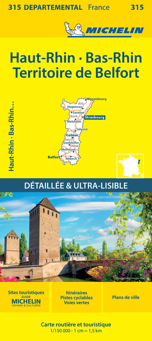 Met een schaal van 1/150 000 oftewel 1cm = 1,5km en reliëf van satellietbeeld biedt de Michelin kaart DEPARTEMENT Bas-Rhin, Haut-Rhin, Territoire de Belfort u een exact beeld van de topografie. Dankzij de aangeraden toeristische trajecten laat ze u toe om alle rijkdom en plaatselijke bezienswaardigheden grondig te verkennen en de mooiste toeristische sites te ontdekken, uitgekozen en aangeduid door Michelin. U zal er ook de nieuwe nummering van de nationale en departementale wegen ontdekken,alsook stadsplattegronden van de belangrijkste steden.