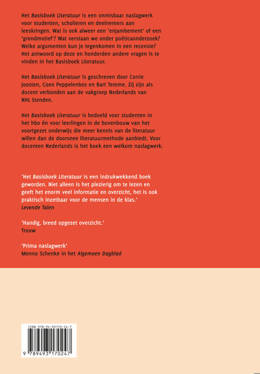 Het Basisboek Literatuur is geschreven door Corrie Joosten, Coen Peppelenbos en Bart Temme (vakgroep Nederlands van NHL Stenden).