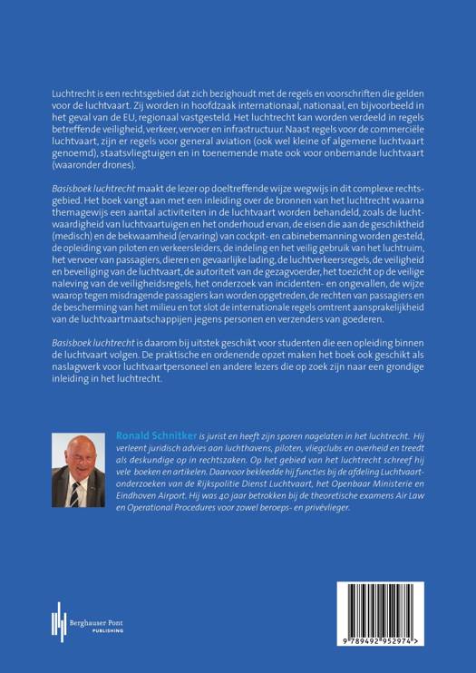 Basisboek luchtrecht maakt de lezer op doeltreffende wijze wegwijs in dit complexe rechtsgebied. Het boek vangt aan met een inleiding over de bronnen van het luchtrecht waarna themagewijs een aantal activiteiten in de luchtvaart worden behandeld, zoals de luchtwaardigheid van luchtvaartuigen en het onderhoud ervan, de eisen die aan de geschiktheid (medisch) en de bekwaamheid (ervaring) van cockpit- en cabinebemanning worden gesteld, de opleiding van piloten en verkeersleiders, de indeling en het veilig gebruik van het luchtruim, het vervoer van passagiers, dieren en gevaarlijke lading, de luchtverkeersregels, de veiligheid en beveiliging van de luchtvaart, de autoriteit van de gezagvoerder, het toezicht op de veilige naleving van de veiligheidsregels, het onderzoek van incidenten en ongevallen, de wijze waarop tegen misdragende passagiers kan worden opgetreden, de rechten van passagiers en de bescherming van het milieu en tot slot de internationale regels omtrent aansprakelijkheid van de luchtvaartmaatschappijen jegens personen en verzenders van goederen.