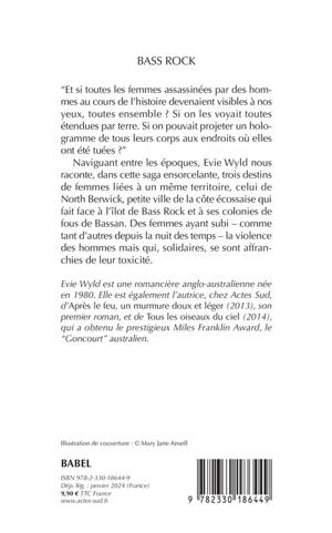 "Et si toutes les femmes assassinées par des hommes au cours de l'histoire devenaient visibles à nos yeux, toutes ensemble ? Si on les voyait toutes étendues par terre. Si on pouvait projeter un hologramme de tous leurs corps aux endroits où elles ont été tuées ? " Naviguant entre les époques, Evie Wyld nous raconte, dans cette saga ensorcelante, trois destins de femmes liées à un même territoire, celui de North Berwick, petite ville de la côte écossaise qui fait face à l'îlot de Bass Rock et à ses colonies de fous de Bassan. Des femmes ayant subi - comme tant d'autres depuis la nuit des temps - la violence des hommes mais qui, solidaires, se sont affranchies de leur toxicité.