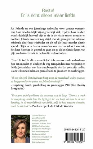Basta! Er is écht alleen maar liefde is het ontroerende verhaal over hoe een moeder en dochter de weg terugvinden naar vergeving en liefde. Jolanda laat met haar autobiografie zien dat geen pijn te diep is om te kunnen helen en geen afstand te groot om te overbruggen.