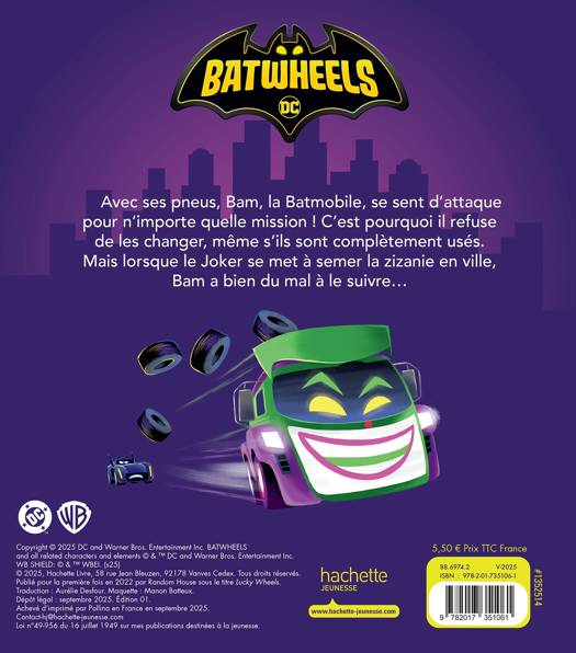 Avec ses pneus, Bam, la Batmobile, se sent d’attaque pour n’importe quelle mission ! C’est pourquoi il refuse de les changer, même s’ils sont complètement usés. Mais lorsque le Joker se met à semer la zizanie en ville, Bam a bien du mal à le suivre…