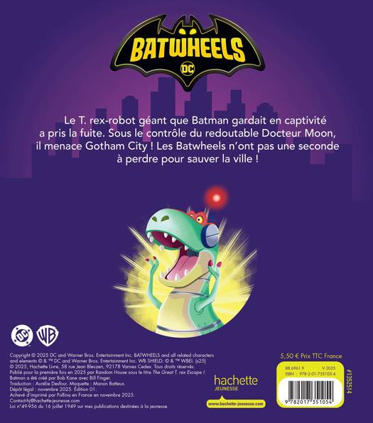 Le T. rex-robot géant que Batman gardait en captivité a pris la fuite. Sous le contrôle du redoutable Docteur Moon, il menace Gotham City ! Les Batwheels n'ont pas une seconde à perdre pour sauver la ville !