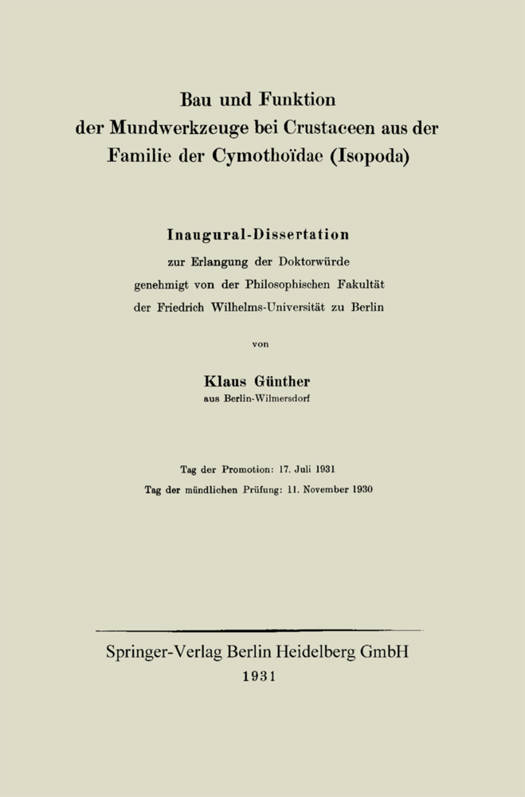 Bau Und Funktion Der Mundwerkzeuge Bei Crustaceen Aus Der Familie Der Cymothoïdae (Isopoda)