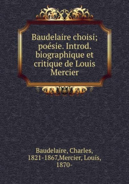 Introduction biographique et critique de M. Louis Mercier. This book, "Baudelaire Choisi Poésie", by Charles Baudelaire, is a replication of a book originally published before 1918. It has been restored by human beings, page by page, so that you may enjoy it in a form as close to the original as possible. This book was created using print-on-demand technology. Thank you for supporting classic literature.