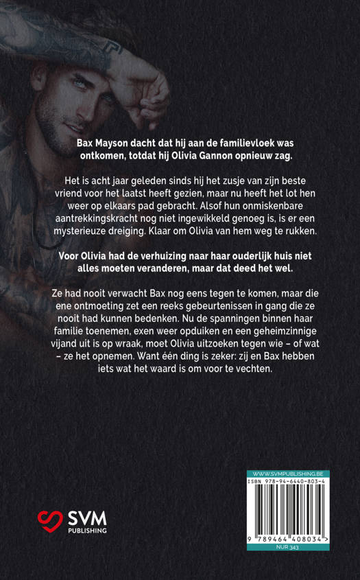 Ze had nooit verwacht Bax nog eens tegen te komen, maar die ene ontmoeting zet een reeks gebeurtenissen in gang die ze nooit had kunnen bedenken. Nu de spanningen binnen haar familie toenemen, exen weer opduiken en een geheimzinnige vijand uit is op wraak, moet Olivia uitzoeken tegen wie – of wat – ze het opnemen. Want één ding is zeker: zij en Bax hebben iets wat het waard is om voor te vechten.