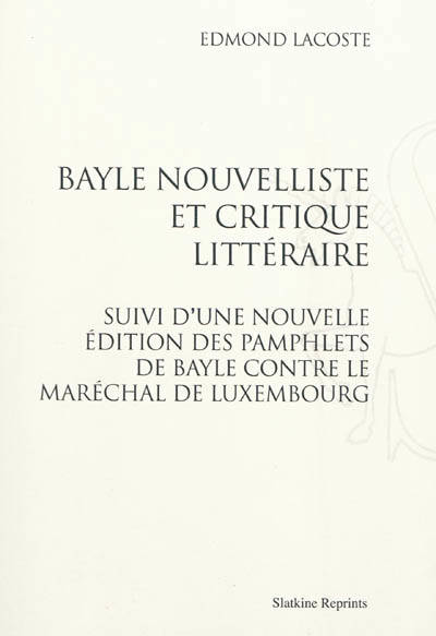 L'étude critique sur Pierre Bayle examine sa formation, sa complexion littéraires, son oeuvre de critique littéraire, son opinion sur la philosophie du 17e siècle, la querelle des Anciens et des Modernes. Le pamphlet qui suit est une satire vive contre le maréchal de Luxembourg, pour jouir de toutes les femmes, être toujours heureux à la guerre, gagner tous les procès, et avoir les grâces du roi.