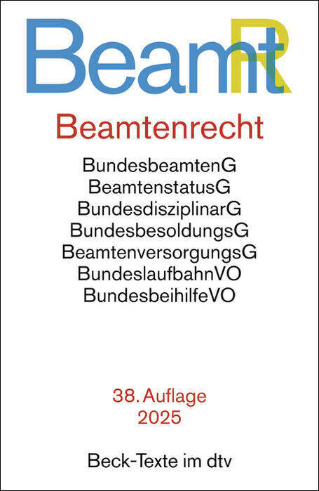 Allgemeines GleichbehandlungsG, AltersteilzeitzuschlagsVO, ArbeitszeitVO, BeamtenaltersteilzeitVO, BeamtenstatusG, BeamtenversorgungsG, BesoldungsüberleitungsG, BundesbeamtenG, BundesbeihilfeVO, BundesbesoldungsG, BundesdisziplinarG, Bundeselterngeld- und ElternzeitG, BundeslaufbahnVO, BundesleistungsbesoldungsVO, BundesmehrarbeitsvergütungsVO, BundesnebentätigkeitsVO, BundespersonalvertretungsG (Auszug), BundesreisekostenG, BundesumzugskostenG, ErholungsurlaubsVO, Grundgesetz (Auszug), LaufbahnbefähigungsanerkennungsVO, Mutterschutz- und ElternzeitVO, SonderurlaubsVO, TrennungsgeldVO