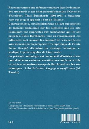Reconnu comme une référence majeure dans le domaine des arts sacrés et des sciences traditionnelles d’Orient et d’Occident, Titus Burckhardt (1908-1984) a beaucoup écrit sur ce qu’il appelait « l’art de l’Islam ». Contrairement à certains historiens de l’art qui insistent de manière unilatérale sur les éléments que les arts islamiques ont empruntés aux civilisations qui les ont précédés, Titus Burckhardt, tout en reconnaissant ces influences, met en avant la continuité de l’essence de ces arts, incarnée par la perspective métaphysique de l’Unité divine (tawḥîd) découlant du message coranique, et souligne le génie singulier de l’âme arabe. La présente anthologie est un recueil d’articles écrits pour diverses occasions et constitue un complément utile et précieux au maître-ouvrage de Burckhardt sur les arts islamiques : L’Art de l’Islam. Langage et signification (éd. Tasnîm).