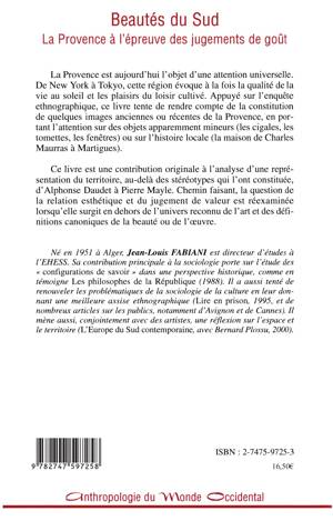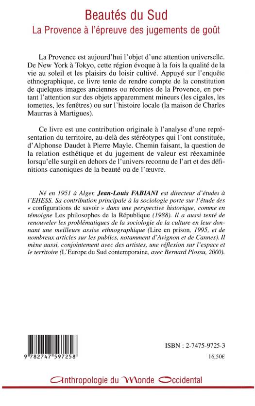 La Provence est aujourd'hui l'objet d'une attention universelle. De New York à Tokyo, cette région évoque à la fois la qualité de la vie au soleil et les plaisirs du loisir cultivé. Appuyé sur l'enquête ethnographique, ce livre tente de rendre compte de la constitution de quelques images anciennes ou récentes de la Provence, en portant l'attention sur des objets apparemment mineurs (les cigales, les tomettes, les fenêtres) ou sur l'histoire locale (la maison de Charles Maurras à Martigues).