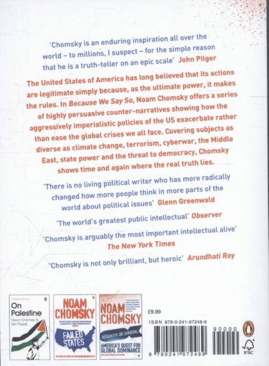 Noam Chomsky is the bestselling author of over 100 influential political books, including Hegemony or Survival,Imperial Ambitions, Failed States,Interventions,What We Say Goes, Hopes and Prospects,Making the Future,On Anarchism, Masters of Mankind and Who Rules the World. He has also been the subject of numerous books of biography and interviews and has collaborated with journalists on books such as Perilous Power, Gaza in Crisis, and On Palestine.Noam Chomsky is Institute Professor (emeritus) in the Department of Linguistics and Philosophy at the Massachusetts Institute of Technology and Laureate Professor of Linguistics and Agnese Nelms Haury Chair in the Program in Environment and Social Justice at the University of Arizona.