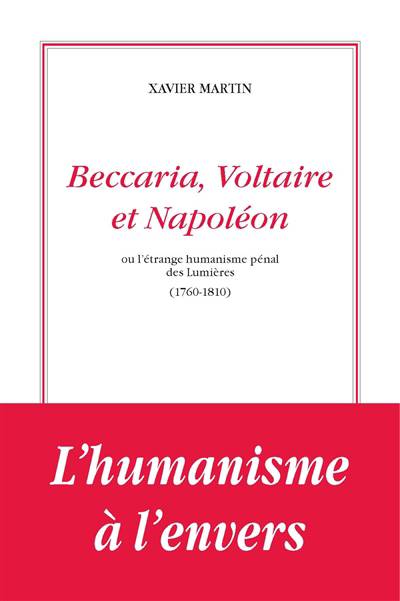 Vulgate académique, quant à l'évolution du droit pénal français : la législation révolutionnaire (1791) se serait prévalue de l'humanisme de Voltaire et de celui du grand Italien Beccaria, l'illustre visionnaire de la refondation de ce secteur du droit, à l'inverse, les codes « criminels » napoléoniens (1808, 1810), avec leur regain de sévérité, auraient pris leurs distances avec cet humanisme. Or cette approche « classique » est sujette à caution. Une prise en compte de la vision du temps sur l'homme relativise sensiblement un tel contraste : de Voltaire lui-même à Napoléon, sans en excepter la Révolution, elle a propension à mettre en valeur une continuité utilitariste. Et l'on se doit d'y constater que l'idéal d'humanité, omniprésent dans les paroles, a dès l'origine et continûment, difficulté à se faire autre qu'illusoire en profondeur, dans les esprits et dans les faits.L'inconvénient d'une telle recherche, c'est que l'image convenue de l'esprit des Lumières, de la Révolution, de la phase impériale, s'en trouve au bout du compte, quant à l'orientation de son axe majeur, quelque peu écornée. Historien des idées politiques, est professeur émérite des Universités. Ses travaux sur l'anthropologie révolutionnaire ont réputation d'avoir modifié l'approche historique de la vision de l'homme au siècle des Lumières. Bien que peu soucieux des modes, cet historien est désormais un auteur reconnu. Ses « angles d'attaque » sont inattendus, sa manière résolument pluridisciplinaire (droit, politique, littérature, histoire des sciences, de la médecine, philosophie...).De cette recherche ont procédé plus de dix livres, et de nombreux articles (revues scientifiques, Actes de colloques), dont certains ont été traduits en italien, en anglais, en japonais, en russe, en espagnol. Xavier Martin a donné aussi de nombreuses conférences, jusqu'au Japon et en Argentine. Il a pris part à une trentaine d'émissions de radio (Radio-Courtoisie, Radio Notre-Dame, France-Culture).