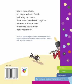 beest is van bas. en beest wil een feest. het mag van mam. ‘haal maar een koek,’ zegt ze. ‘en een bot voor beest.’ maar bas haalt meer. heel veel meer!